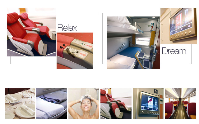 140 le poltrone "Relax", 26 per carrozza, carrozza, in tutto e per tutto paragonabili a quelle utilizzate in classe business per i voli intercontinentali. Ognuna di esse è reclinabile fino ad un angolo di 136° e dista 1,33m dalla fila successiva, ha controlli individuali per la regolazione dello schienale, del poggiapiedi e del poggiatesta, ha in dotazione una coperta e uno schermo per la visione di filmati e altri video di intrattenimento. La direzione delle poltrone è sempre nel verso di marcia.