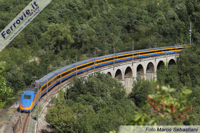SULMONA (L'Aquila) - Trasferta in terra abruzzese per Dia.Man.Te. L'ETR.500 Y2 di Rete Ferroviaria Italiana il 7 agosto ha viaggiato da Roma a Sulmona e viceversa per la messa a punto dei sistemi diagnostici di bordo della MerMec, su curve di raggio stretto caratteristiche della tratta Avezzano - Sulmona.