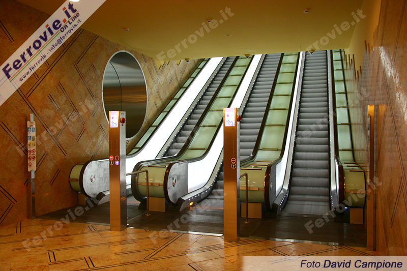 L'impianto, che si sviluppa fino a 50 metri sotto il livello stradale, si compone di 11 scale mobili e 4 ascensori per collegare i vari livelli, contraddistinti da tre tonalità. Si comincia con il grigio scuro che riprende il colore della pavimentazione della strada soprastante, per passare al colore giallastro del tufo che caratterizza l'atrio di stazione e parte delle scale fisse e mobili di accesso alla piattaforma, per concludere con l'azzuro, il colore del mare, lì dove il livello di stazione inizia ad essere al di sotto del livello del mare.