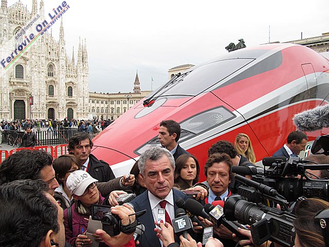 A fare gli onori di casa nella prestigiosa piazza milanese il Sindaco Giuliano Pisapia e Mauro Moretti, Amministratore Delegato del Gruppo Ferrovie dello Stato Italiane.