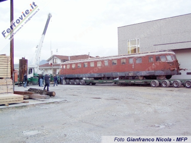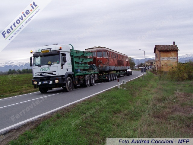 Acquistata dal Museo Ferroviario Piemontese grazie al generoso contributo della Compagnia di San Paolo, la storica automotrice è stata trasferita a Savigliano, sede del museo, al termine di lunghe e laboriose operazioni di carico sul carrello stradale, che si sono protratte per l'intera giornata e che hanno comportato anche la costruzione di circa 10 metri di binario direttamente sotto la "pancia" della macchina. Anche il trasporto, avvenuto il successivo lunedì mattina, non è stato esente da difficoltà, poichè il rimorchio, lungo ben 25 metri, non aveva spazio sufficiente per svoltare sulla statale; si è reso perciò necessario approntare un breve tratto sterrato, per consentire al traporto eccezionale di aggirare un fabbricato, passando dal campo retrostante.