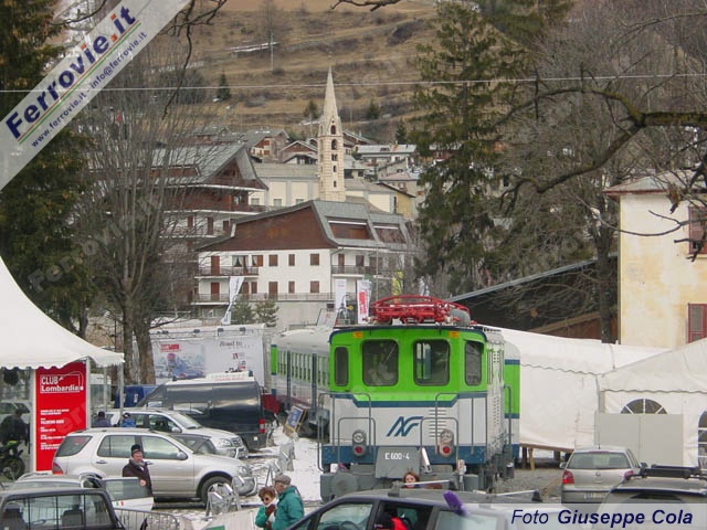 BORMIO (Sondrio) - In concomitanza con i Mondiali 2005 di sci alpino che si sono tenuti sulle piste di Bormio e di Santa Caterina Valfurva dal 28 gennaio al 13 febbraio, è stata esposta nella cittadina valtellinese, assieme a tre vetture, la locomotiva E600-4 delle Ferrovie Nord Milano.