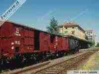 Non poteva mancare anche qualche ripresa con materiale ferroviario, dal momento che la bellissima stazione locale si presta benissimo ad utilizzi simili avendo conservato un'atmosfera del passato. Per l'occasione è stato utilizzato un convoglio composto da quattro vetture "Centoporte" e cinque carri merci a due assi, il tutto movimentato dalla bella 640.143 della DTR Piemonte.