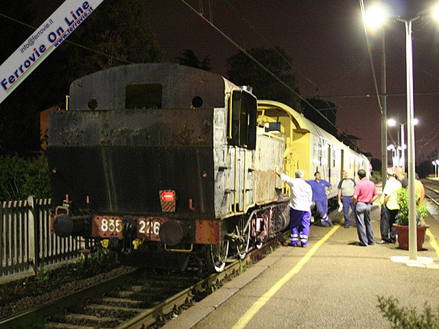 MILANO - La mattina di sabato 29 luglio l'anziana 835.226 è giunta nel deposito di Smistamento, dopo essere stata monumentata per diversi anni nella stazione di Arona. La locomotiva, costruita a Napoli dalle Officine Meccaniche nel 1911, è stata infatti una delle prime in Italia ad essere adibita a monumento, esposta sul lungolago di Arona già nei primi anni '70 e successivamente dislocata su un tratto di binario posto sul primo marciapiede della stazione. Grazie all'interessamento del deposito di Milano Smistamento e del MERS la 835.226 è stata ora riportata sui binari della Rete Ferroviaria Italiana dopo un lungo lavoro che ha impegnato a fondo la squadra del treno soccorso meneghino.