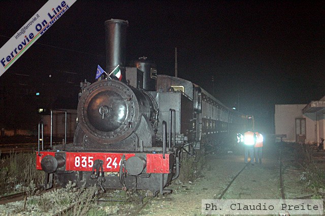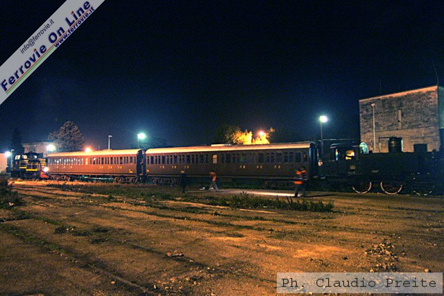 LECCE - Nella notte tra il 13 e il 14 dicembre, tra l'ex Squadra Rialzo ed il piazzale della stazione, si è svolta una manovra del tutto "speciale", in virtù del materiale che ne è stato protagonista: la locotender 835.244 e due carrozze Centoporte, affidate alle cure del Museo leccese e mantenute in ottime condizioni grazie al lavoro ed alla passione dei volontari dell'AISAF.