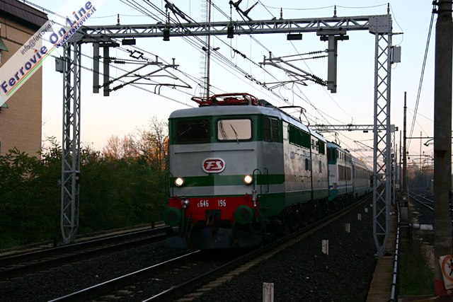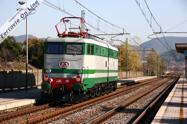 Si tratta della E.646.196, che in sede di riparazione ciclica ha ricevuto la livrea d'origine in verde magnolia e grigio nebbia, priva di modanature e con fregio FS.