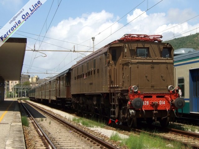Dopo aver raggiunto la stazione di Monterosso, il convoglio è stato ricoverato a Sestri Levante. La E.428.014 ha trainato una composizione di 8 vetture storiche "Corbellini" e "Cento porte", insieme ad un bagagliaio.