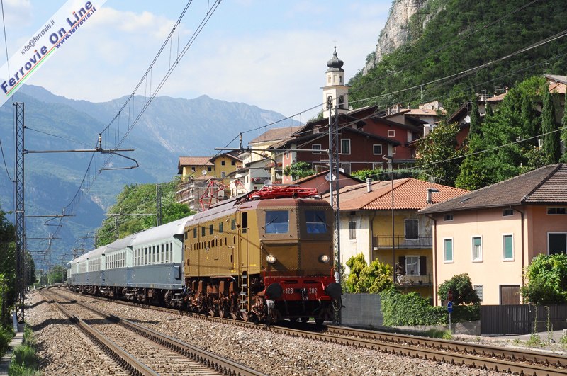 VERONA - Sabato 25 Giugno 2011, con una corsa di prova tra Verona Porta Vescovo e Trento ha fatto il suo rientro ufficiale in servizio la storica locomotiva elettrica E.428.202. La corsa di prova ha visto anche la presenza, in composizione, della E.646.085 e delle carrozze in livrea "Treno Azzurro", dell'Associazione Treni Storici Liguria. La E.428.202 è stata revisionata dalle O.G.R. della città Scaligera e sarà assegnata alla Associazione Treni Storici Liguria, che mantiene i rotabili storici della Divisione Trasporto Regionale Liguria.