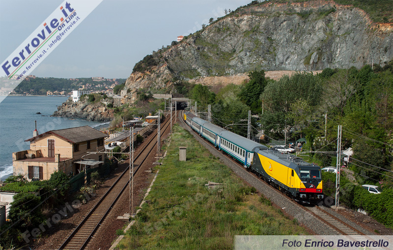 VADO LIGURE (Savona) - Prima uscita in linea sui binari liguri per le E.483.040 e 041 della Ferrotramviaria di Bari. Le due locomotive elettriche, appartenenti alla famiglia Traxx F140 DC, sono frutto di un ordine trasmesso dall'impresa ferroviaria pugliese a Bombardier nel marzo del 2012, per disporre di macchine elettriche potenti con le quali sviluppare dei nuovi servizi merci sulla dorsale Adriatica di RFI.