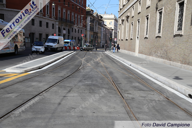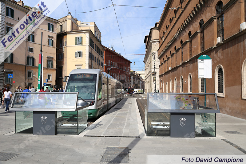 La tratta non è separata fisicamente dal traffico veicolare di via Botteghe Oscure e gli incroci non sembrano il massimo della sicurezza. Con lo spostamento del tram 8 a piazza San Marco, si è recuperato uno spazio pedonale davanti al teatro Argentina.