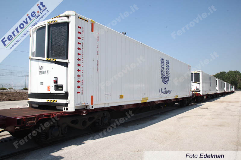 Il trasporto dei gelati avviene in speciali container frigorifero di Unit45 in acciaio e alluminio, capaci di 33 Euro pallet o 26 Iso pallet e lunghi 13716 mm, dotati di apparato Thermo King con alimentazione Diesel o elettrica, che consente di regolare la temperatura interna in un range variabile da +25° a -25°.