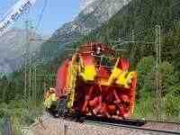 BOLZANO - Curioso impiego fuori stagione per lo spazzaneve rotativo S.244 assegnato a Bolzano, utilizzato per trainare alcuni carri tramoggia carichi di pietrisco. Quest'ultimo viene poi scaricato in alcuni punti lungo i binari delle linee altoatesine per interventi di ripristino della massicciata.