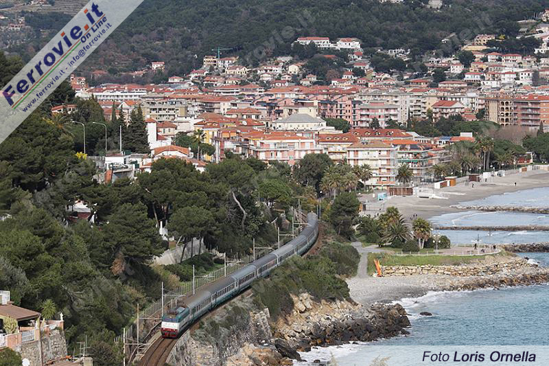 ANDORA (Savona) - Sono previsti tempi lunghi affinché venga ripristinata la circolazione sulla ferrovia Genova - Ventimiglia, interrotta tra Andora e Cervo in seguito allo svio di venerdì 17 gennaio della E.444.022 titolare dell'Intercity 660 Milano Centrale - Ventimiglia, deragliata dopo aver impattato contro del materiale franato sulle rotaie dalla collina sovrastante, insieme alla carrozza UIC-Z immediatamente dietro.
