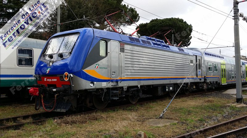 ROMA - Esordisce in sordina e con il buio della notte la nuova livrea della Divisione Trasporto Regionale di Trenitalia. In un'assonnata Roma Termini, tra la curiosità dei viaggiatori e del personale FS in servizio attratti dalla lucentezza del treno e dai suoi colori diversi rispetto al consueto, ha così debuttato la sera del 2 marzo la composizione di E.464.589 con carrozze Vivalto di Roma Smistamento (vedi News ferroviarie del 28/02/2014).