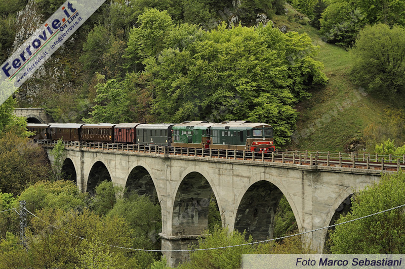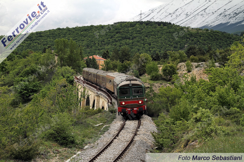 Sulmona (L'Aquila) - Week end di intenso traffico ferroviario sulla "Transiberiana d'Italia". Sabato 17 e domenica 18 maggio, a circa un anno dalla sospensione del servizio turistico, la ferrovia Sulmona - Castel di Sangro è stata percorsa da ben tre treni speciali, organizzati dall'Ente Parco della Majella con la collaborazione di Fondazione FS Italiane per celebrare il protocollo d'intesa siglato tra le due parti, che segna la riapertura per fini turistici della suggestiva linea di montagna abruzzese.