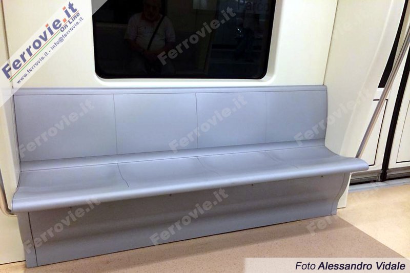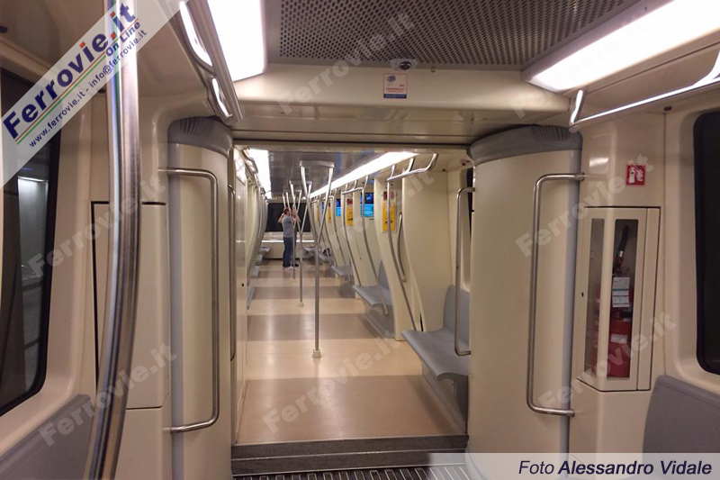 Tramite due rampe di scale o tramite ascensori è possibile raggiungere la banchina ad isola, dotata di porte di banchina con apertura automatica in concomitanza dell'arrivo del treno; in stazione era presente e visitabile anche uno dei nuovi convogli Ansaldo da 6 pezzi, interamente comunicanti e dotati della tecnologia "Driverless" similimente ai mezzi già in uso nelle metropolitane di Torino, Brescia e Milano (M5). Costruiti negli stabilimenti AnsaldoBreda di Reggio Calabria, i convogli hanno una capienza massima di 1200 persone, con spazi attrezzati per i disabili ed il trasporto delle biciclette. La velocità massima è di 90 km/h ed in esercizio è prevista una velocità commerciale di 33-34 km/h.