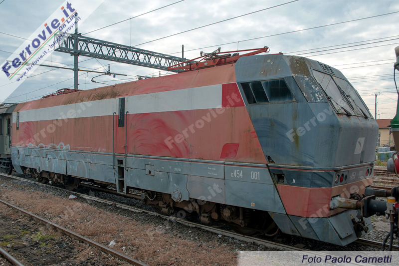 La E.454.001, unica macchina delle tre prodotte che si è salvata dalla demolizione, appartiene all'effimero gruppo di locomotive elettriche monocabina, progenitore delle odierne E.464, progettato a fine anni '80 dello scorso secolo per i treni passeggeri reversibili e consegnate nel 1989. Strettamente imparentate alle E.454, nello stesso periodo furono progettate anche le E.453, che avrebbero dovuto essere utilizzate accoppiate per i servizi merci pesanti; non entrarono mai in servizio regolare e i due esemplari costrutiti sono stati in seguito alienati.