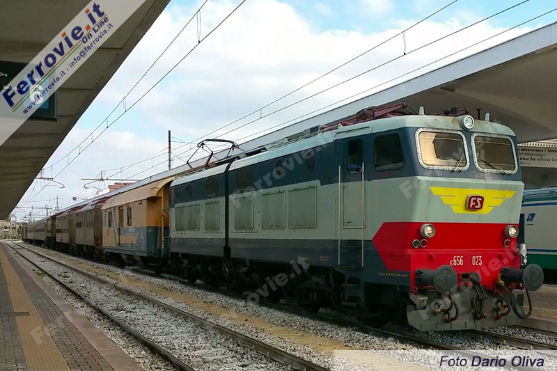 In discesa da Pistoia la E.656.023 (con al seguito un carro soccorso) ha raggiunto Taranto passando per Roma, Napoli e Potenza, mentre per il viaggio di ritorno la pesante composizione del materiale rimorchiato ha imposto il passaggio per l'Adriatica.