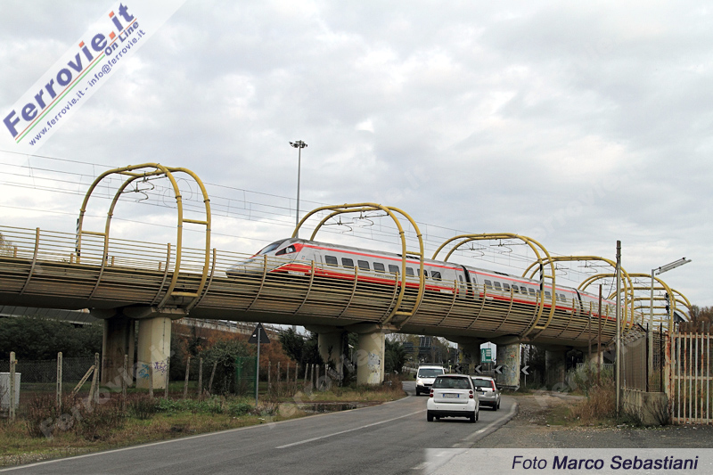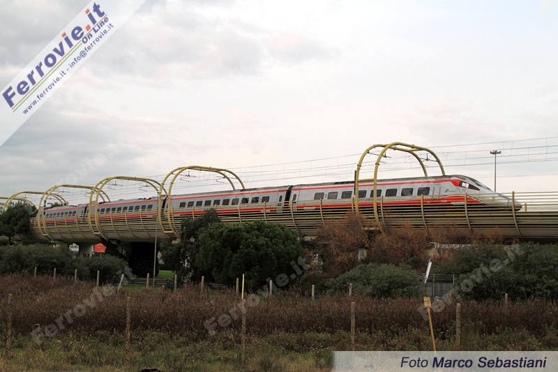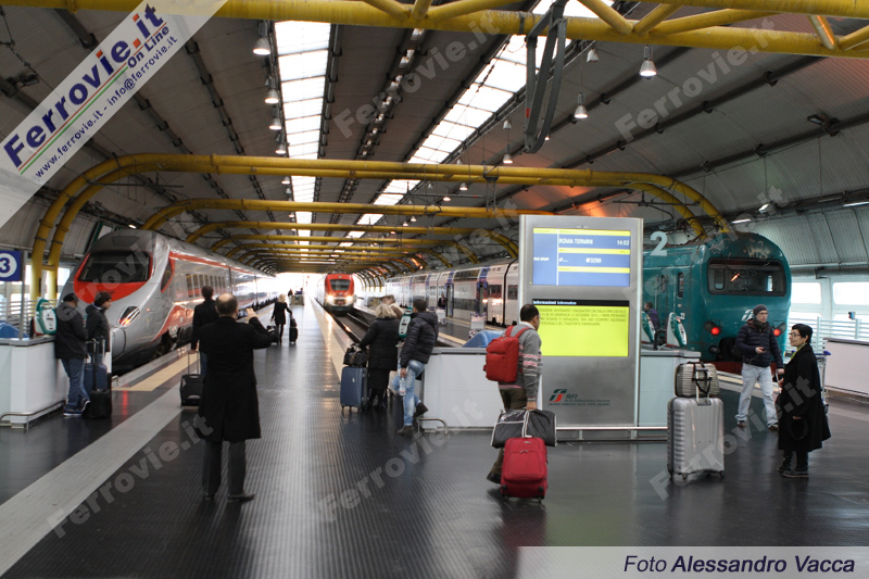 ROMA - Debutta con pochi viaggiatori ma in perfetto orario il nuovo collegamento Frecciargento Venezia - Fiumicino Aeroporto e viceversa. Alle 9.51 di domenica 14 dicembre il primo ETR.600 (treno n.10) in arrivo dalla città da Mestre si è attestato con un minuto di anticipo al terzo binario della stazione di Fiumicino Aeroporto con il FA 9401/9490; alle 11.08 lo stesso materiale è ripartito alla volta di Venezia come FA 9491/9492 con un minuto di ritardo.