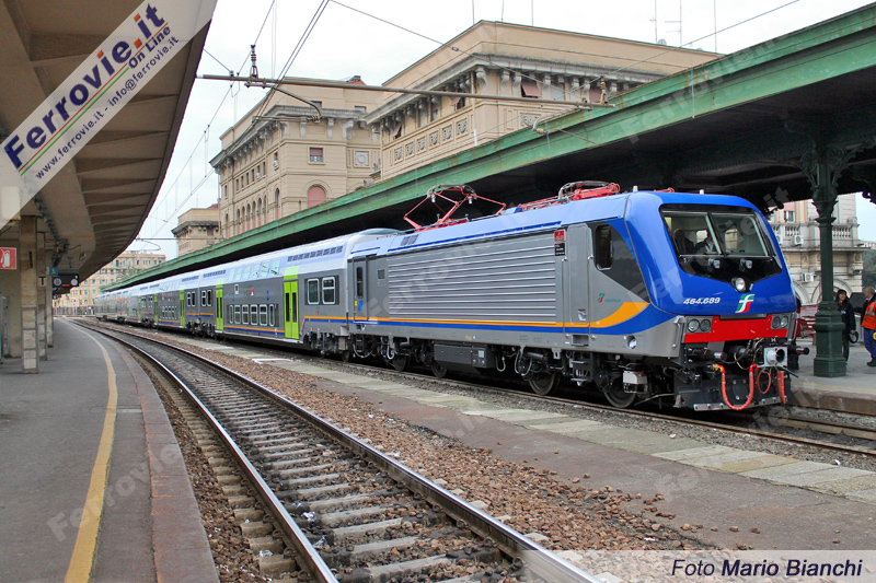 GENOVA - Ancora E.464 in arrivo sui binari italiani. Martedì 23 dicembre è stata consegnata a Genova la E.464.689, prima unità dell'ultima fornitura di 29 unità (dalla 689 alla 717 ordinate nel novembre 2013), insieme ad un convoglio di carrozze a doppio piano Vivalto per Trenitalia e Regione Liguria (vedi News ferroviarie del 08/12/2014).