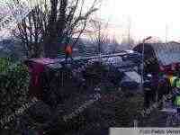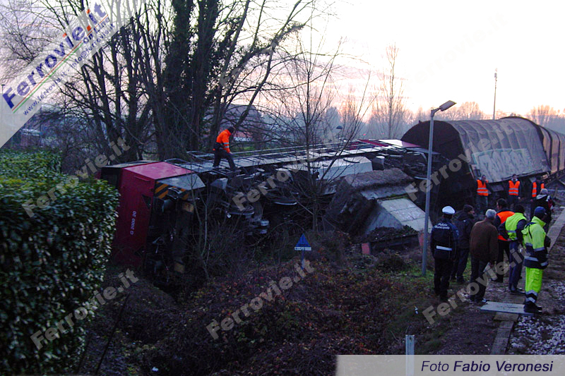 La locomotiva si è ribaltata su un lato ed anche il primo carro è uscito dai binari; il macchinista, sotto choc ma fisicamente illeso in apparenza, è stato trasportato in ospedale per accertamenti.