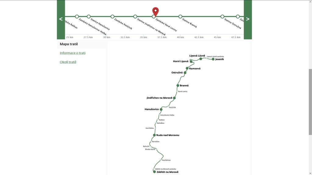 Nonostante sia solo in lingua ceca, la fruizione del sito è intuitiva e ricca di funzioni interessanti. Tra queste la possibilità di posizionarsi con il mouse su un punto a piacimento del tracciato (riprodotto graficamente) che si sta visionando: il video in riproduzione (allocato sulla piattaforma Youtube) verrà automaticamente riposizionato al punto prescelto, aggiornando al tempo stesso anche la barra laterale che avanza automaticamente indicando progressiva chilometrica, velocità massima della linea, nomi delle stazioni e tutte le informazioni presenti sugli omologhi della scheda treno o fascicolo linea in uso nella Repubblica Ceca. Il posizionamento sul tracciato può avvenire anche attraverso la barra scorrevole laterale. Il video è sempre accompagnato dall'audio localizzato per ciascuna visuale e in sovraimpressione non mancano la velocità istantanea, i nomi delle stazioni ed altre informazioni.