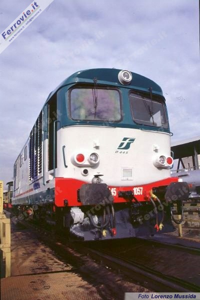 Il giorno 3 gennaio del 2000 ha effettuato la corsa prova il D.445.1057, primo Diesel da treno a ricevere i nuovi colori. La macchina, dell' O.M.L. di Torino Smistamento, ha subito una R.S. al motore termico e nell'occasione è stato provato il nuovo schema di coloritura, battendo sul tempo anche le O.G.R. di Rimini, preposte alla riparazione di questi Diesel.