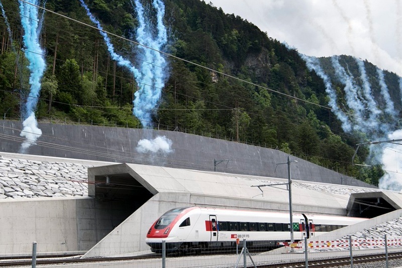 Realizzata in 17 anni e costata 21,5 miliardi di euro, l'opera segna anche il record di profondità, raggiungendo un massimo di 2.300 metri sotto la superficie esterna della montagna. Una volta a regime, il tunnel permetterà il passaggio di 260 treni merci e 65 treni passeggeri al giorno: da Milano si potrà raggiungere Zurigo in 3 ore mentre per le merci potranno circolare treni fino a 3.600 tonnellate contro il limite delle 1.500 tonnellate sul tracciato storico. Tracciato storico che rimarrà in funzione almeno fino al 2017. Che cosa accadrà in seguito è oggetto di riflessione da parte dell'Ufficio federale dei trasporti svizzero, impegnato al momento delle ridefinizione della futura concessione con un impiego prettamente turistico.