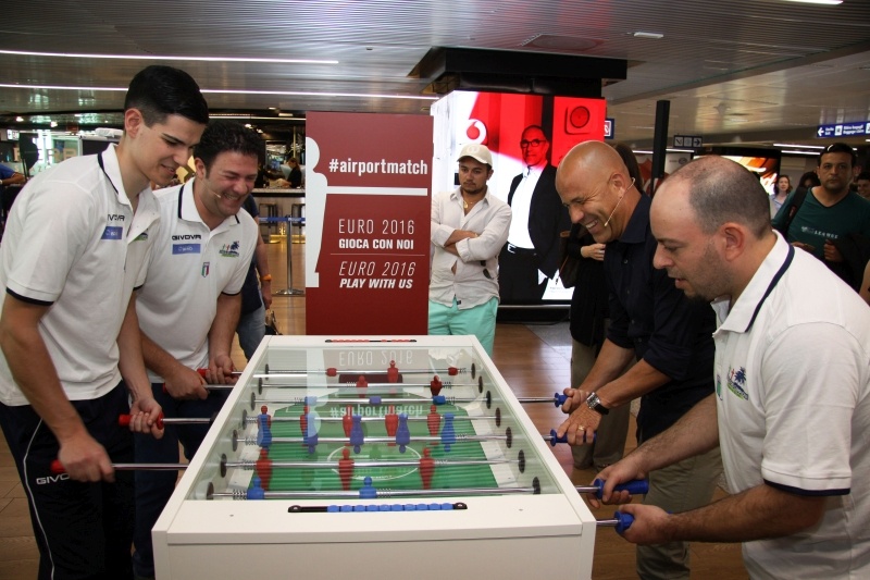 Continuano le iniziative messe in campo da Aeroporti di Roma per offrire ai viaggiatori servizi di alta qualità e occasioni di intrattenimento all'interno del principale scalo italiano. Da oggi - e oltre il termine dei Campionati Europei 2016 - il Leonardo da Vinci ospiterà sei postazioni calciobalilla a disposizione dei passeggeri, in arrivo e in partenza presso il principale aeroporto italiano.
