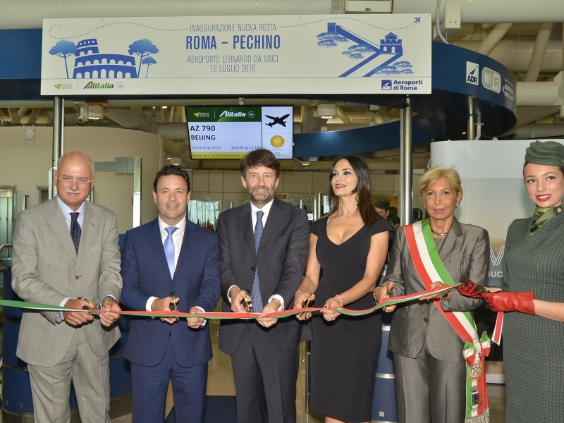 Alitalia torna in Cina. E' decollato lunedì 18 luglio il primo volo diretto Roma - Pechino con il quale la Compagnia italiana sbarca nella capitale cinese dopo un'assenza di tre anni. Il nuovo collegamento è stato inaugurato con una cerimonia del taglio del nastro all'aeroporto di Fiumicino dove erano presenti l'Amministratore Delegato di Alitalia, Cramer Ball, il Ministro dei Beni e delle Attività Culturali e del Turismo, Dario Franceschini, la Vice Sindaco del Comune di Fiumicino, Anna Maria Anselmi, e il Direttore Sviluppo Marketing Aviation di Aeroporti di Roma, Fausto Palombelli.
