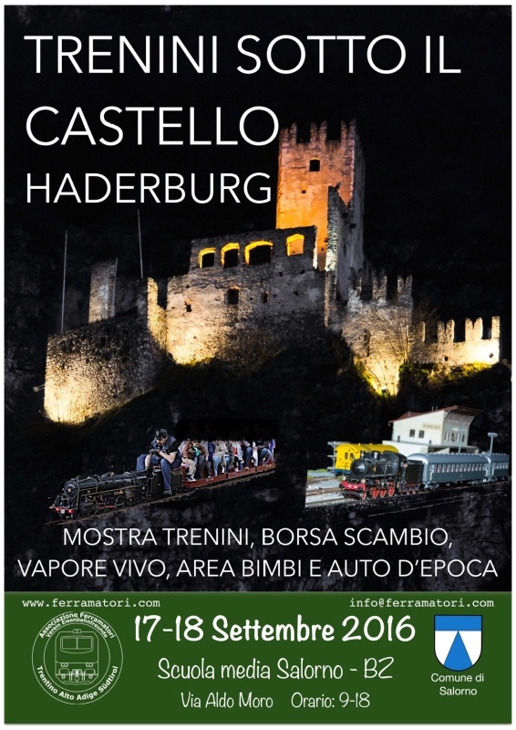 manifestazione "Trenini sotto il castello Haderburg" a Salorno (BZ) presso la scuola media (Via Aldo Moro), in programma il 17 e 18 settembre 2016.