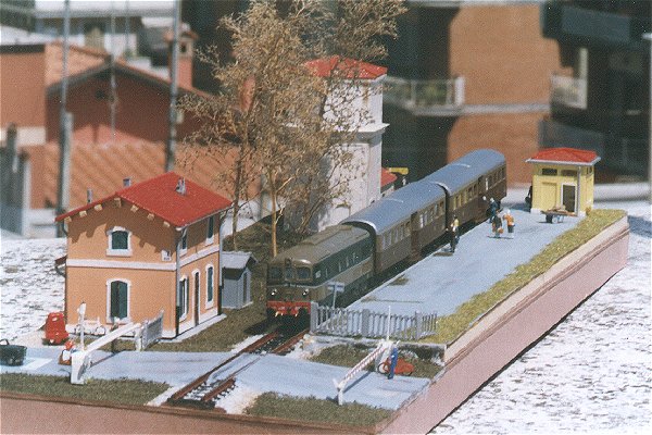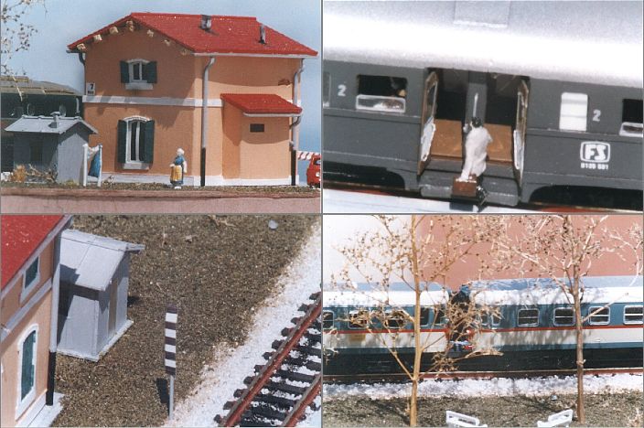 Il passaggio a livello è una elaborazione di quello Rivarossi, mentre la tipica staccionata delle nostre ferrovie è opera di Armo; i personaggi, di derivazione commerciale, sono stati dipinti a mano e, in alcuni casi, modificati nella posizione, come nel caso del motociclista sulla bella "lambretta" Armo.