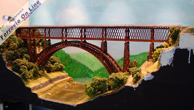 Il ponte S. Michele di Paderno d'Adda, sulla linea Bergamo - Milano. Considerato un simbolo dell'archeologia industriale in Italia, è percorso nella parte inferiore dalla ferrovia e nella parte superiore da una strada provinciale. Il bel modello è opera del Club Modellismo Pavese.