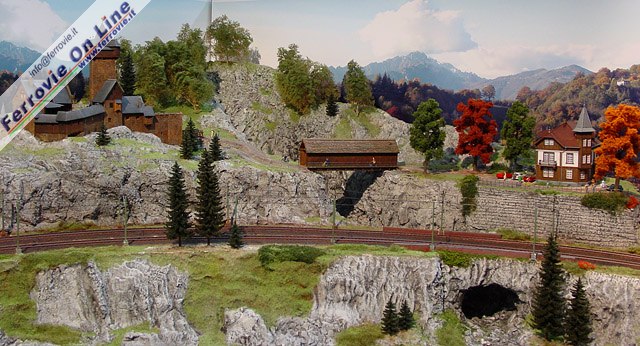 Il plastico in stile teutonico del Marklinfan Club, con un'ambientazione tipicamente montana e l'immancabile castello.