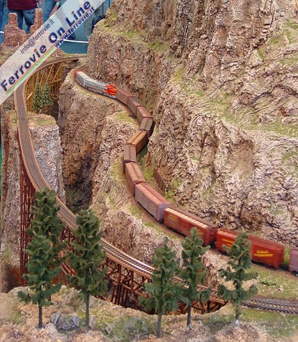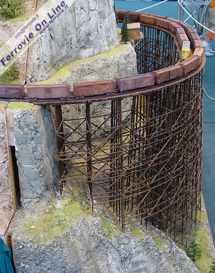 Punto di forza del plastico "Tellgate, Hilltown & Western" sono gli imponenti ponti dalla esile struttura. Uno di questi, in legno e completamente in curva, è attraversato da due convogli merci.