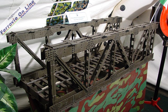 Interessanti, nello stand del Genio Ferrovieri dell'Esercito Italiano, i modelli in scala di alcuni ponti utilizzati in ambito ferroviario. Qui un ponte metallico scomponibile tipo "Roth Waagner".