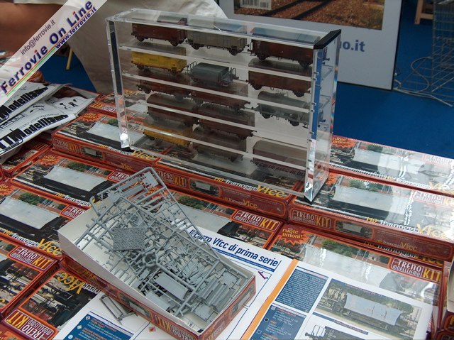 L'ultimo kit della fortunata intuizione della Duegi riproduce il carro tramoggia VFcc di prima serie. Vediamo le stampate contenute nella confezione ed una vetrinetta con i modelli montati dell'intera collezione. (Foto Mario De Prisco)