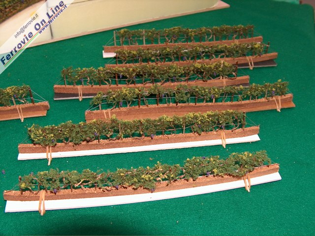Fra i tanti accessori prodotti da Etoile Verte, questi filari di vite sono caratterizzati dalla base di sughero che consente di piantumare il vigneto su terreni di qualsiasi conformazione. Il dettaglio é tale che non é stata dimenticata neppure l'uva matura. (Foto Mario De Prisco)