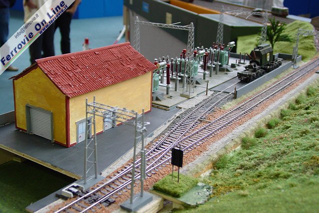 In alcune tratte è in corso l'elettrificazione della linea, che verrà via via estesa a tutto il plastico. Qui i portali sono già stati installati, mentre la sottostazione elettrica, completata per quanto riguarda le opere civili, attende l'ultimazione degli impianti.