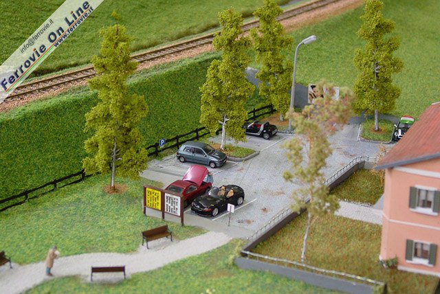 Nei pressi di una zona residenziale, un comodo parcheggio e un bel parco con panchine affiancano la linea ferroviaria che qui corre in rilevato.
