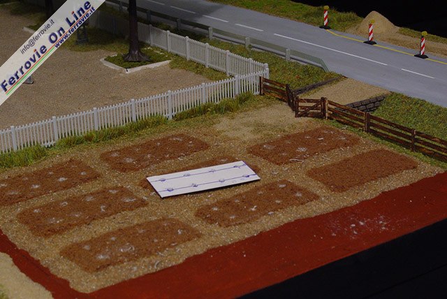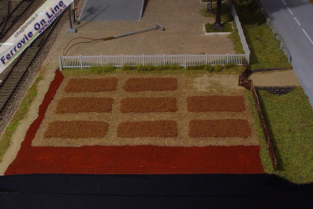 9. Per simulare la terra soffice sono stati utilizzati dei fiocchi di spugna di color marrone, mentre i camminamenti ai lati sono realizzati con ghiaino, il tutto applicato stendendo preventivamente uno strato non troppo consistente di colla vinilica. (Foto Fabio Veronesi)