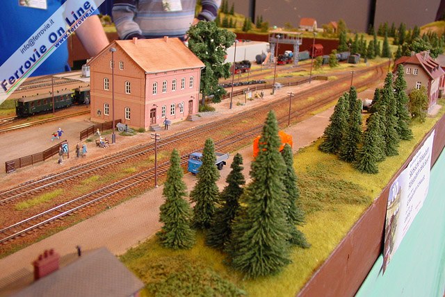 9. Flöhatalbahn della Sassonia, opera del gruppo IG Modellbahn Schkeuditz, Lipsia (D). La costruzione del plastico modulare in scala H0/H0e della "IG Modellbahn Schkeuditz" ha avuto inizio nel 2004. Il progetto prevedeva la costruzione di un plastico d'alto livello ambientato negli anni '60. I moduli sono realizzati con testate FREMO e misurano tra i 60 e gli 80 cm. Le due stazioni invece misurano 3 metri. Il plastico riproduce una linea secondaria nel paesaggio collinare della Sassonia con collegamento ad una ferrovia a scartamento ridotto... (Foto Fabio Veronesi, 8 novembre 2008)