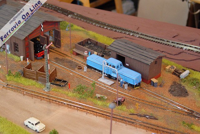 10. ... Su una parte si trova una stazione con scalo merci e ferrovia industriale a scartamento H0f (6.5mm come la scala Z). Dall'altra parte invece si trova una piccola stazione con passaggio allo scartamento ridotto H0e. Questa linea prosegue poi su un tratto di binario a doppio scartamento. Nella stazione Schönthal è accennata una tratta tranviaria a doppio scartamento H0/H0m. (Foto Fabio Veronesi, 8 novembre 2008)