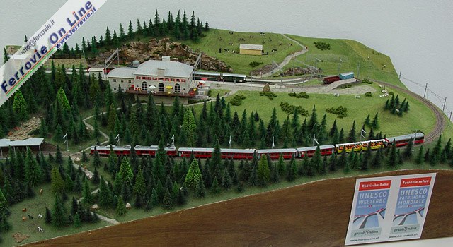 5. Ferrovia Retica, opera di Hanny Kurt, Lasa (BZ). Ogni parte di questo plastico in H0m è caratterizzata da varie scenette. Grande attenzione è stata rivolta anche al materiale rotabile: tutte le locomotive elettriche viaggiano con pantografi alzati sia in linea che in stazione. (Foto Fabio Veronesi, 8 novembre 2008)