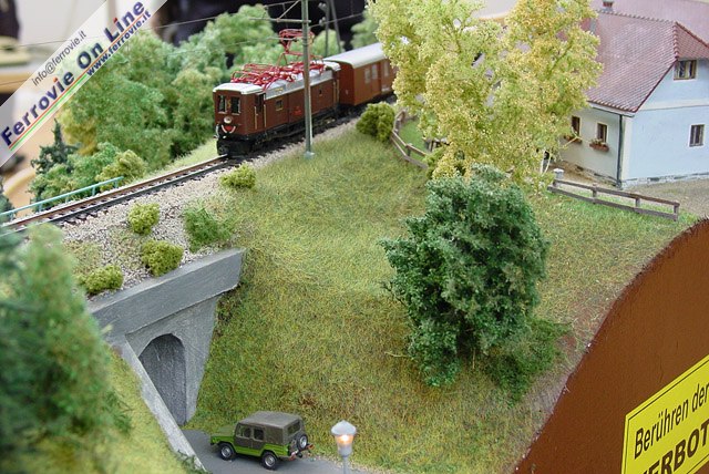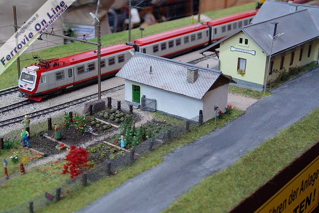 Durante la mostra, per ragioni di spazio, sono stati esposti solo alcuni dei moduli che compongono questo pregiatissimo plastico, realizzato in scala H0e da alcuni fermodellisti con la regia di Josef Kaufmann ed Erich Achleitner, di cui proponiamo di seguito alcune immagini.