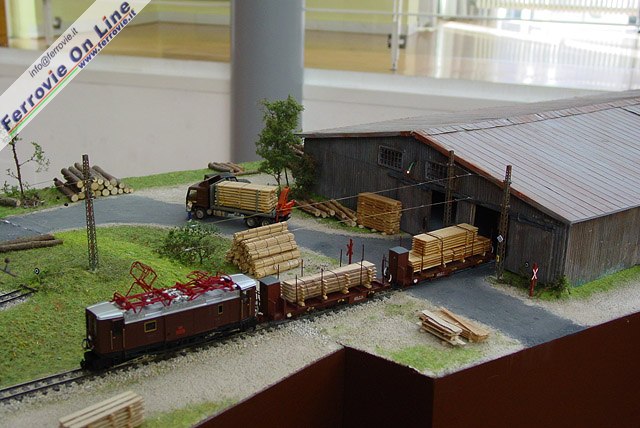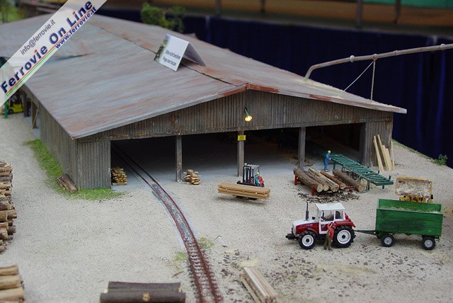 Degno di nota il realismo di questo modulo del plastico, con un treno merci in uscita dalla segheria. (Foto Fabio Veronesi, 8 novembre 2008)