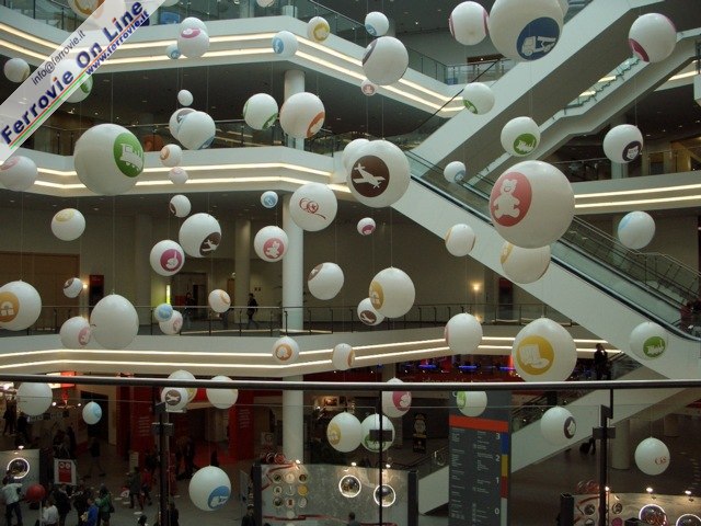 L'ampio salone di ingresso decorato con palloni rappresentativi dei diversi tipi di giocattoli. (Foto Giancarlo Cariati, 6 febbraio 2009)