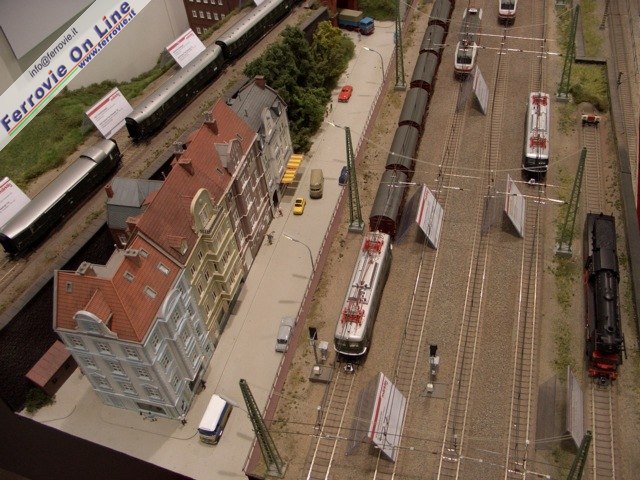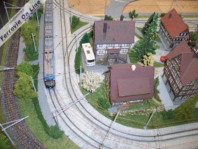 Molto interessante questo plastico con ferrovia a doppio scartamento e borgo servito da una estesa rete tramviaria... (Foto Giancarlo Cariati, 6 febbraio 2009)