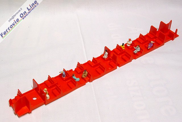 6. I più volenterosi a questo punto potranno dipingere la riproduzione dell'arredamento interno, che si presente alquanto spartana. Nel modello visibile nelle immagini, per semplicità questa operazione non è stata eseguita. Sono invece stati posizionati con colla vinilica alcuni passeggeri seduti. Data la ridotta distanza tra sedili e pavimento, sono stati utilizzati personaggi privi di gambe provenienti da una confezione Preiser.