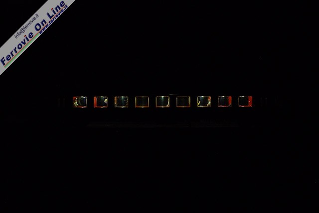 12. In questa immagine laterale si notano i fasci di luce generati dai singoli led posizionati in corrispondenza di ciascuna coppia di finestrini.
